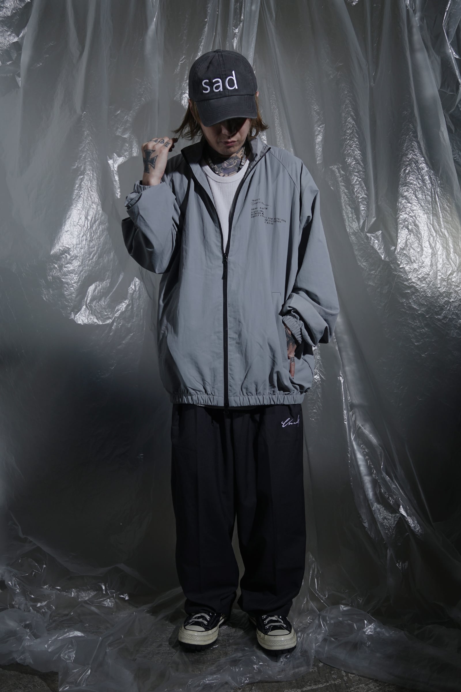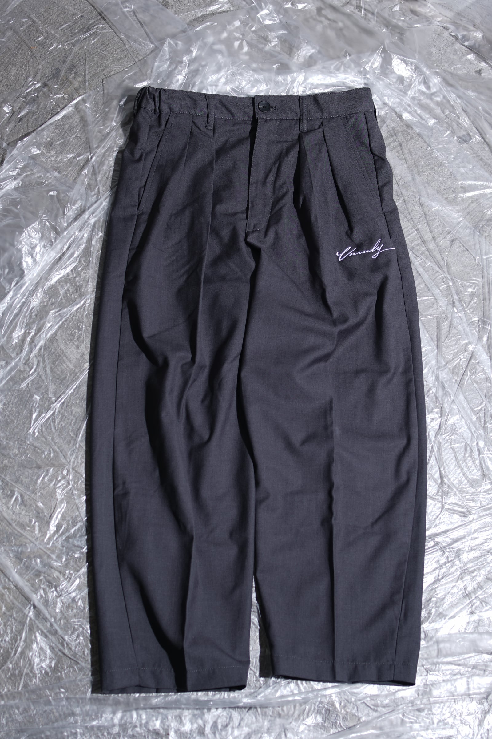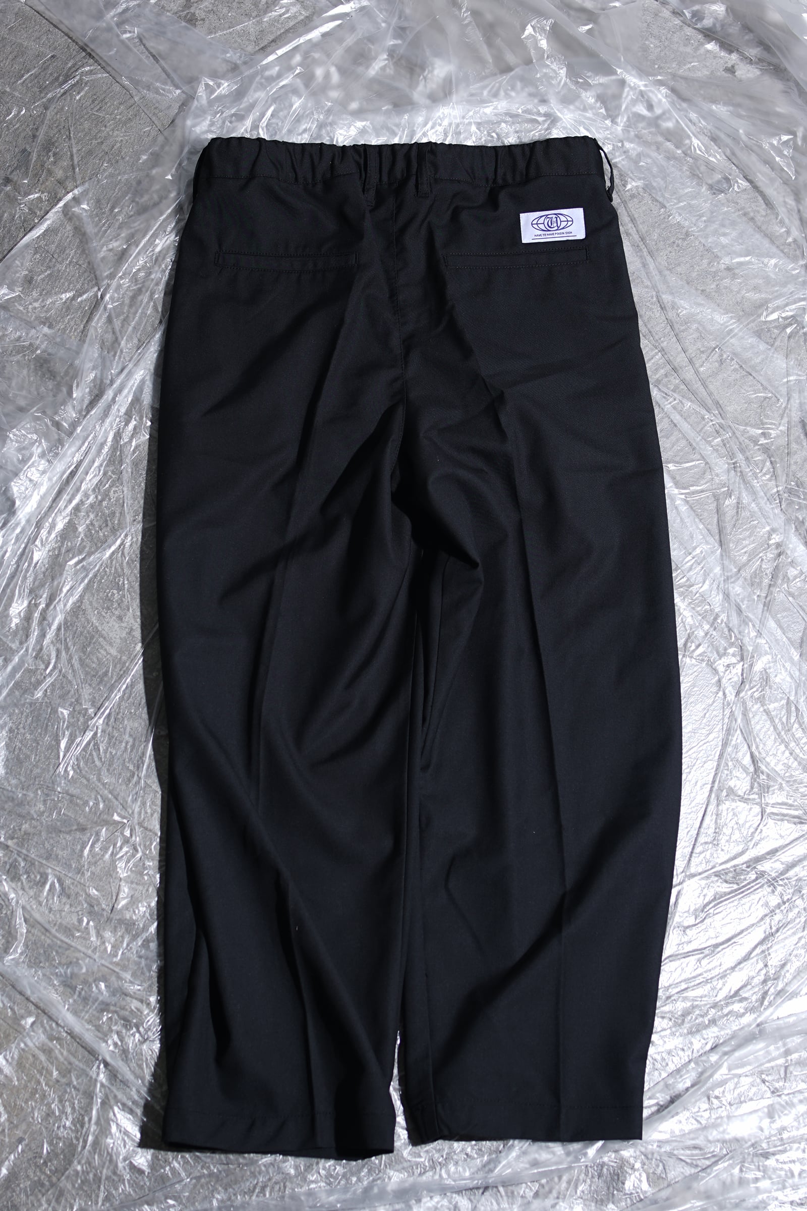 ポリエステル×レーヨンの落ち感ある生地を用いたタック入りスラックス。