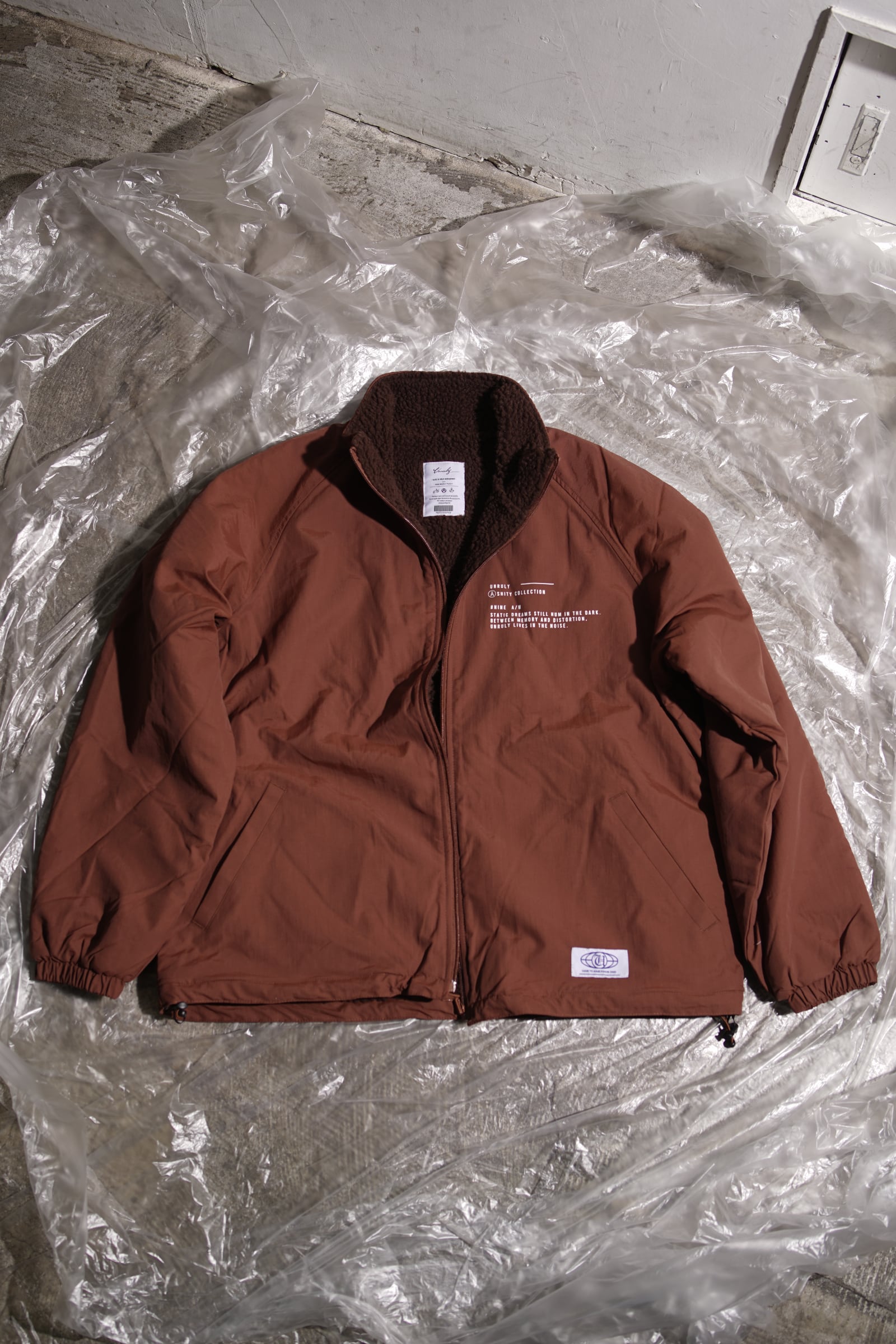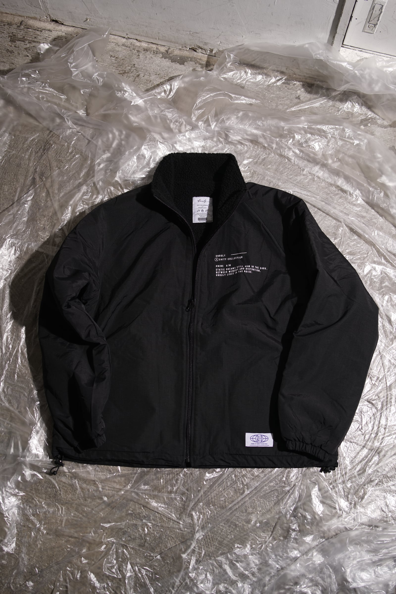 マットな高密度ナイロン面と、毛足の長いボア面が楽しめるリバーシブル仕様。程よい高さの襟と内側ドローコードでシルエット調整も自在。ユニセックスで着用でき、アウトドアとストリートを横断する万能アウターです。